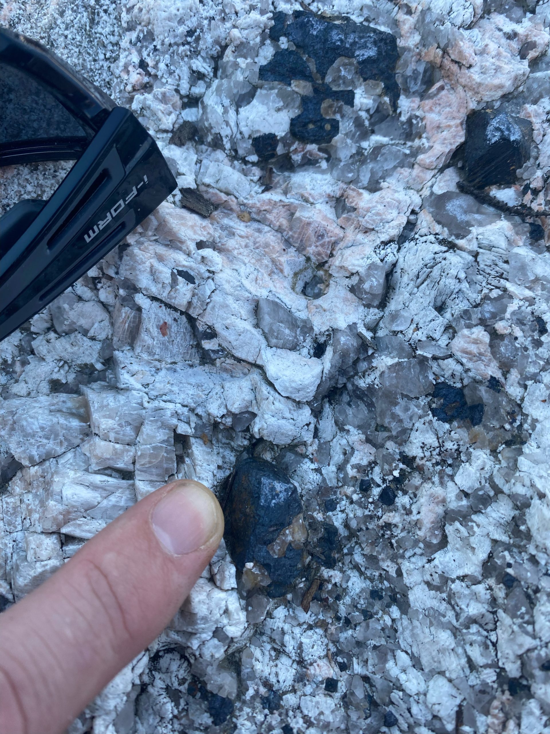 - Multiple pegmatite dykes between 0.4–4 m wide.